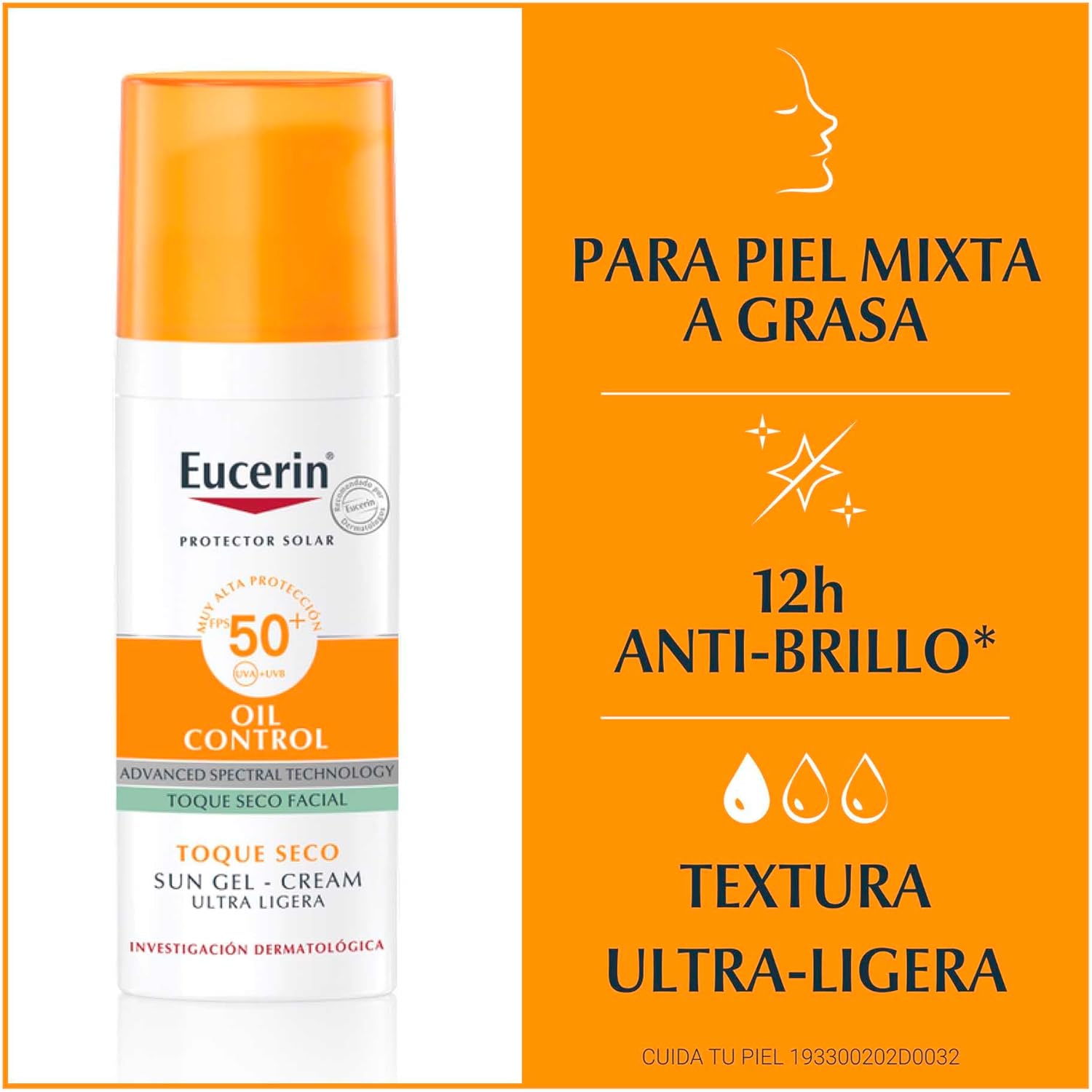 Protector solar facial efecto mate toque seco Oil Control, 50 ml